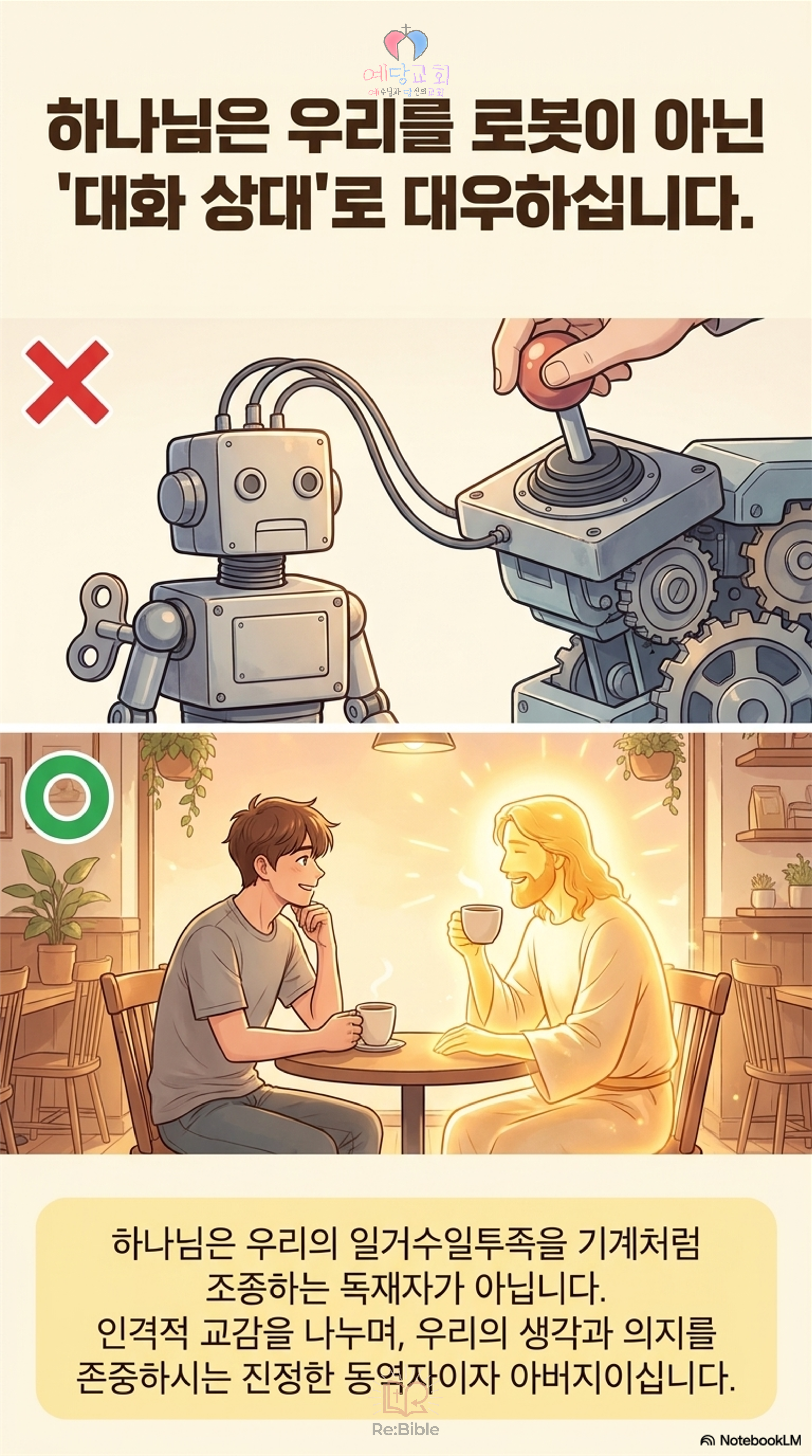 전통적 신앙관은 “인간은 아무것도 할 수 없다”며 전적인 무력을 중요하게 생각했지만, 현대 신학은 우리의 ‘응답’을 굉장히 중요한 신앙의 중심으로 여깁니다. 구원은 하나님이 일방적으로 끌고 가시는 수동적인 것이 아니라, 하나님과 우리가 함께 이루는 동역입니다.